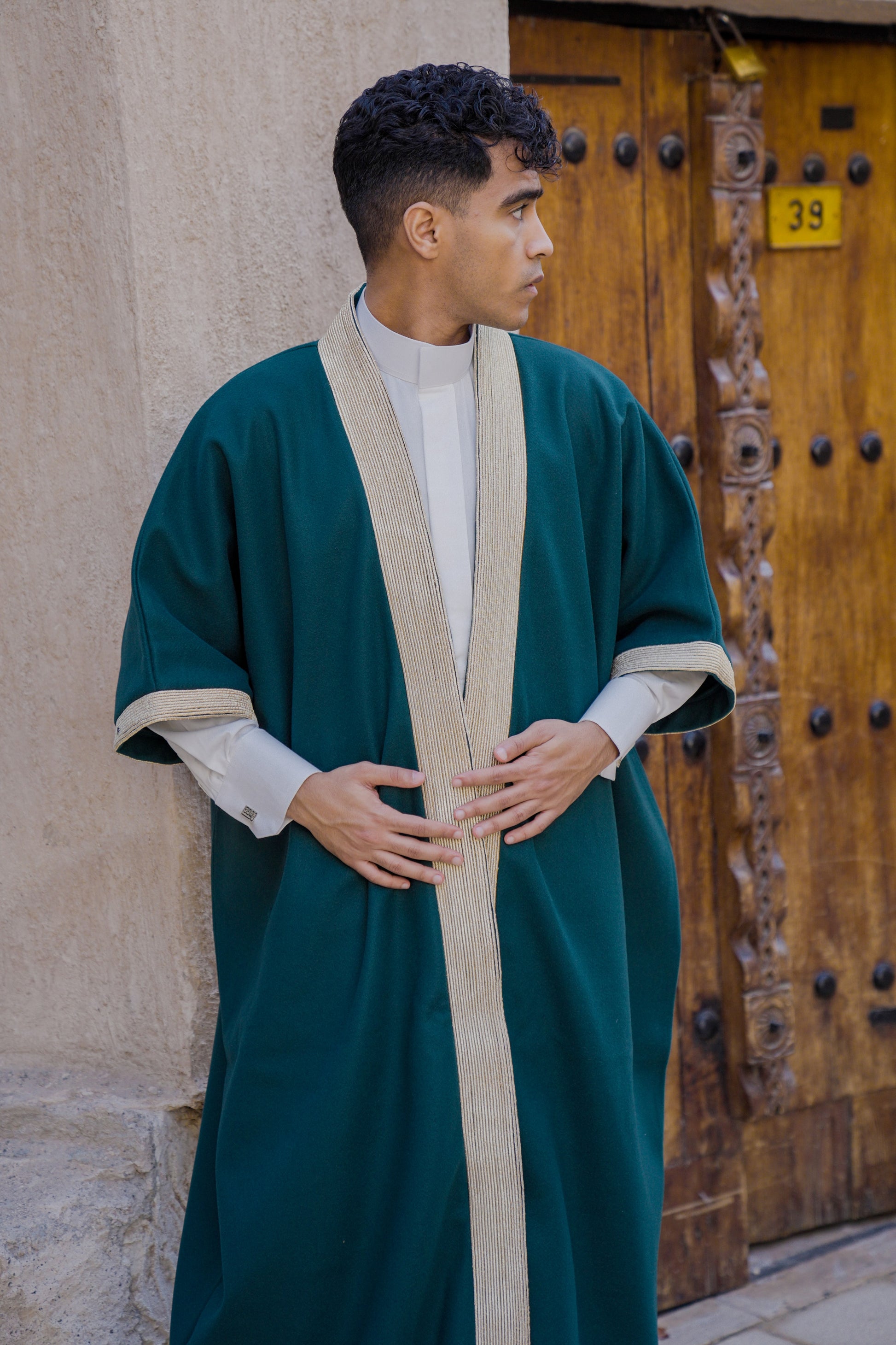 Crafted from premium fabric in a deep, rich emerald hue, this kaftan drapes with a commanding yet graceful presence. The structured yet flowing silhouette ensures comfort while exuding poise and authority, making it ideal for formal occasions, ceremonial events, and elevated evening wear.